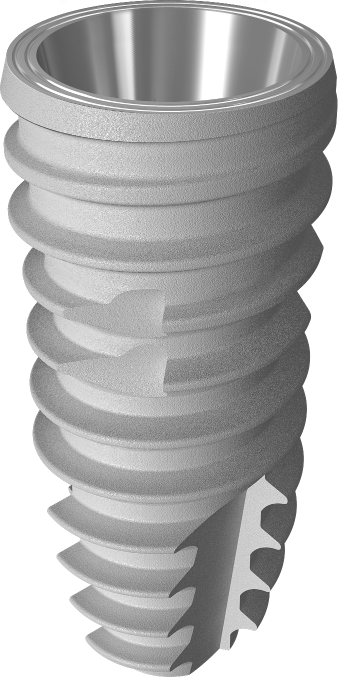 Триизмерно изображение на така наречения tissue level имплант - серията ITI на компанията Neobiotech. Като абревиатура ITI означава International Team of Implantology - организация със седалище в Швейцария, която обединява най-големите ентусиасти в областта на лечението с импланти, организира лекции, семинари и конгреси и провежда обширни клинични и лабораторни проувания. Сдружението е изключително силно, отдавна има създадени традиции в областта и натрупва все повече последователи. За съжаление обаче много често въпросната организация се занимава и с чисто лобистка дейност - налага интересите на определени компании - производители на зъбни импланти, яростно критикува други и дори се опитва да ограничи броя на денталните лекари, които имат право да поставят импланти. Това определено не са особено етични практики, но обществото има своите механизми на противодействие.