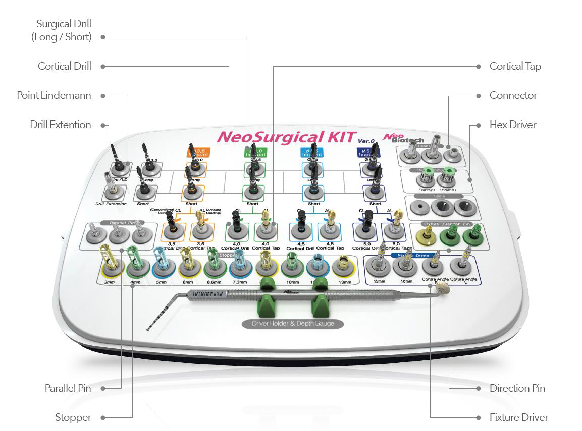 Основен набор от фрези, с който се извършва поставяне на зъбни импланти. Различните производители предлагат на пазара и различни продукти (което е нормално), но общата тенденция е към непрекъснато усъвършенстване на набора от инструменти. Понякога се извършва опростяване на комплекта, тъй като според много философски концепции гениалните неща всъщност са прости и колкото по-елементарно е едно решение, толкова по-ефективно работи то в практиката. В други случаи това се оказва далеч не толкова печеливша стратегия и вместо да се изхвърлят, се добавят нови и нови фрези, преходници, стопери, държачи, ключове и ключета. За ужас на философите се оказва че далеч не във всеки клиничен случай нещата са прости, а се изисква специфичен оперативен подход с доста усложнен хирургичен инструментариум.